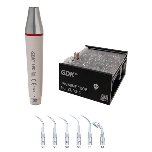 CAVITADOR ULTRASÓNICO PIEZOELECTRICO CON PIEZA DE MANO LED DESMONTABLE Y AUTOCLAVABLE a 135º FUNCIÓN cavitador + Perio + Endo PARA MONTAR EN EQUIPO ODONTOLÓGICO 220v 50hz Provisto con 6 Puntas compatible EMS-Woodpecker x2 – G1 x1 – G2 x1 – G4 x1 – P1 perio x1 – E1 endo ATRIBUTOS – Pieza de mano desmontable y autoclavable con luz de iluminacion led – Insertos compatibles con EMS – Frecuencia suave de 30Khz +/- 2khz – Niveles de ajuste manual de frecuencia – Tecnología micro chipset de control de frecuencia permanente y automático – Tecnología de retorno negativo que mantiene la potencia invariable para un tratamiento mas comfortable para el paciente Las puntas del scaler se venden individualmente como repuesto NOTA: hay dos sistemas populares de rosca para las puntas y acoples de piezas de mano: – ROSCA E: EMS/GDK/Jasmine/Woodpecker/mectron la punta tiene en su base 4 caras planas – ROSCA N: Satelec/nsk/coltene la punta tiene en su base 2 caras planas y 2 caras curvas. Las piezas de mano de cada sistema tambien tienen acoples diferentes a las mangueras