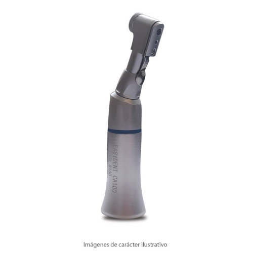 CONTRAANGULO EASYDENT CA 100 a buje de bronce sinterizado SISTEMA DE AGARRE INTRA CAMBIO DE FRESA CON GATILLO FUNCIONA CON TODOS LOS CA INTRA CALIDAD BAJO NORMAS CE AUTOCLAVABLE 135 GRADOS Velocidad máxima: 20.000/25.000 RPM Fresa aplicable: diámetro 2.334-2.355mm Sonido: menor o igual a 70DB Refrigeración: se vende como accesorio el codigo 90134 Kit de refrigeración consta de pico de salida, clip de sujeción al cuerpo de contraángulo y tubo fino de silicona que conecta con la salida de agua del micromotor. GARANTIA 6 MESES POR DEFECTOS DE FABRICACIÓN